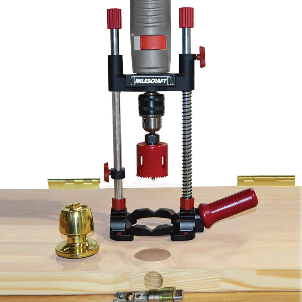 A portable drill stand for use almost anywhere, now you can drill straight holes all the time. With the DrillMate drilling straight or angled holes, drilling on the edge of a board or even round stock has never been easier. This all-metal construction DrillMate drill guide provides the precision of a drill press with the ease of a hand drill.