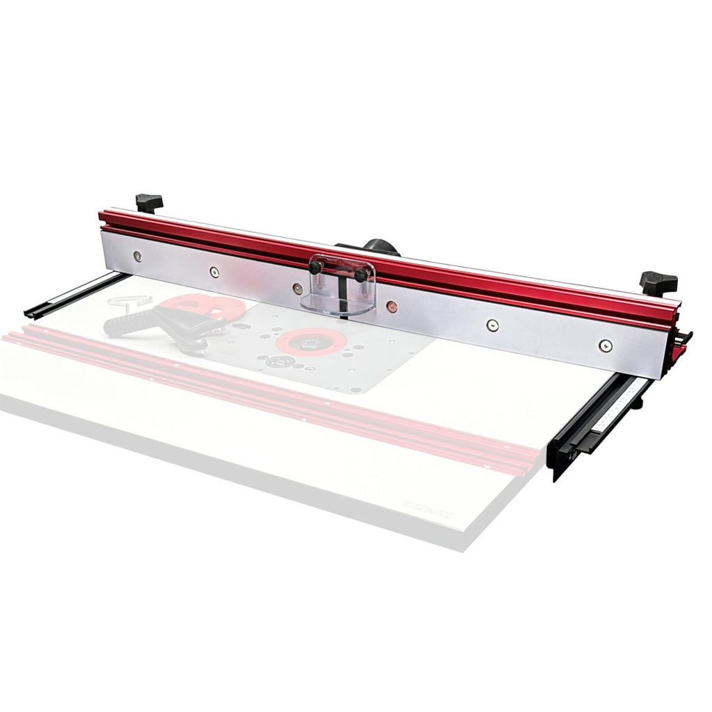 The AUKTools Professional Router Fence is an advanced choice within its price range, offering a dual-track fastening system and adjustable scales for quick, repeatable setup. The fence, constructed of single extruded aluminium with a red anodized finish, glides smoothly in the tracks and locks firmly with twist lock-down knobs.