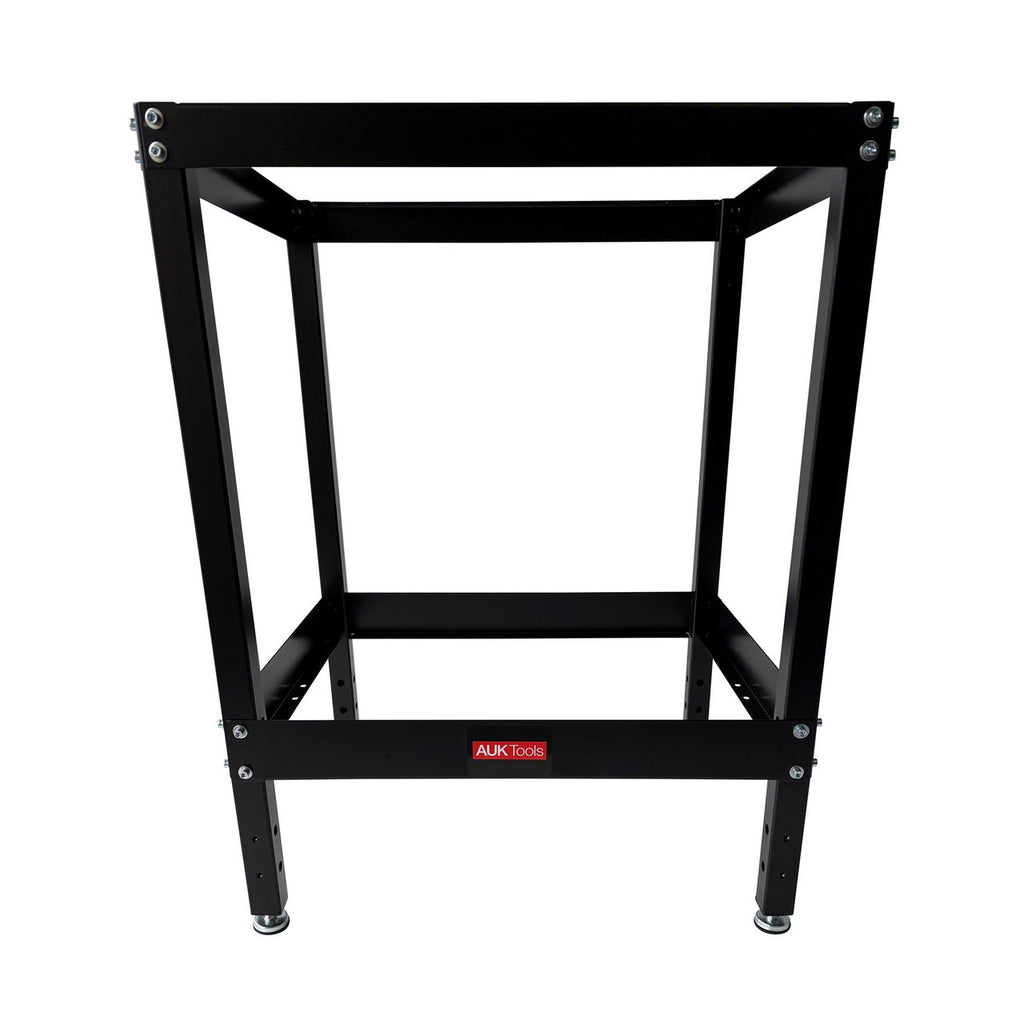 Introducing the AUKTools heavy duty router table stand, designed with sturdy square section steel legs and steel angle cross braces for ultimate durability. The pre-installed welded steel nuts ensure quick and easy assembly using the supplied hex socket cap screws. Anti-slip non marking feet are adjustable for levelling on uneven floors and can accommodate all JessEm router table tops including the Mast-R-Lift Excel II table.