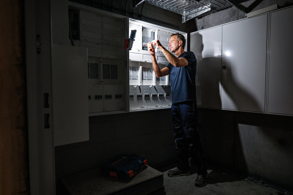 The Cordless Light PRO GLI 18V-800 offers excellent workspace illumination, making it ideal for electricians, plumbers, and various professions. With up to 800 lumens provided by 20 LEDs, this versatile work light is designed for maximum adaptability.