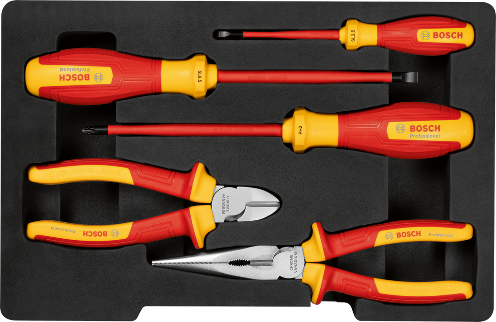 The Bosch Professional VDE mixed hand tools set - a 5-piece assortment of insulated, simple, and convenient tools perfect for various tasks.