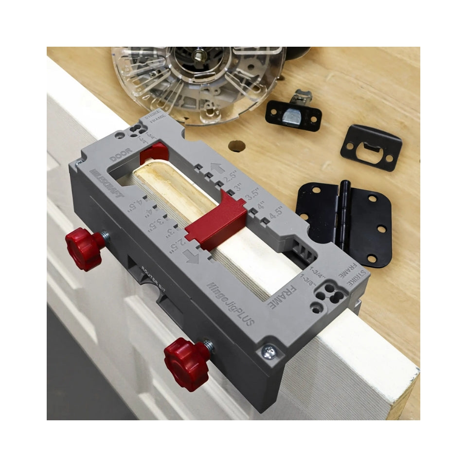 The HingeJigPLUS™ from Milescraft is the ultimate jig for routing both door and frame hinge, latch, and strike plate mortises. With its self-clamping design and built-in depth settings, it ensures fast, accurate installation without damaging finished doors. Built for North American standard hardware, it even includes the PinDoctor™ tool to remove old hinge pins with ease.
