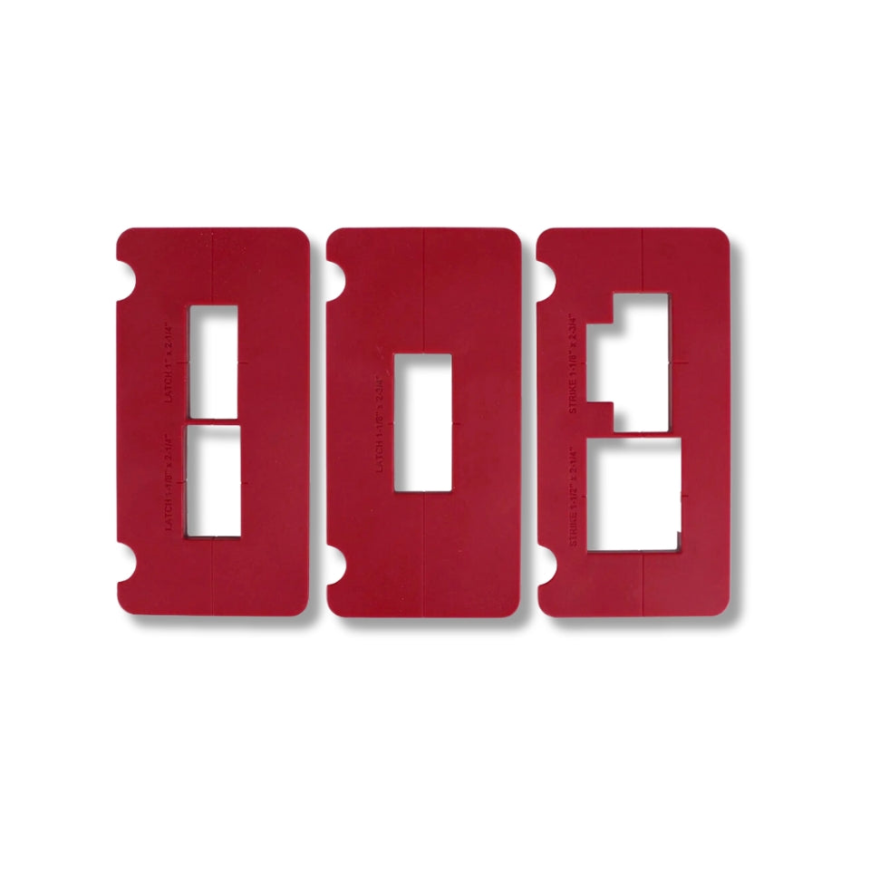 - Strike plate templates support 1-1/2” x 2-1/4” and 1-1/8” x 2-3/4” mortises