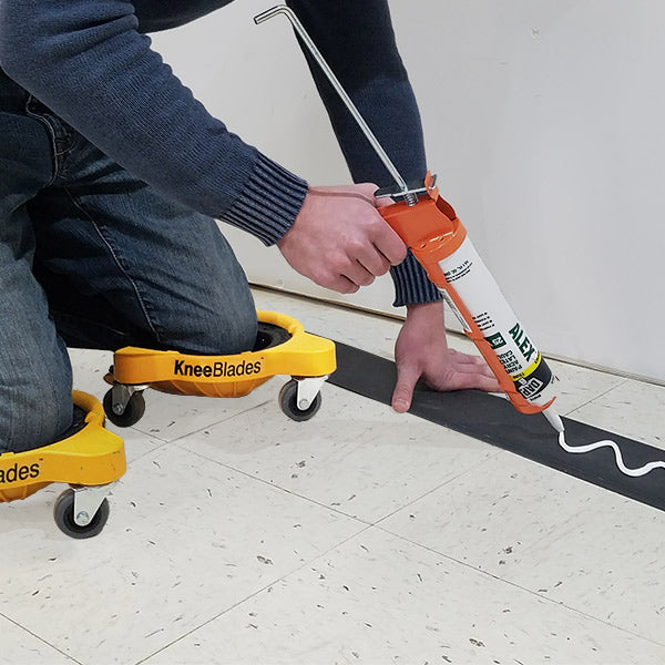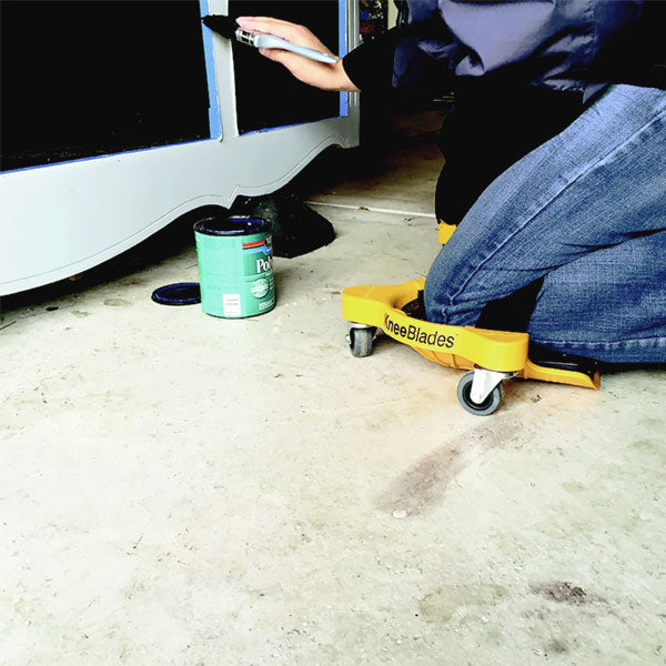 KneeBlades® are durable rolling knee pads designed to improve balance, mobility, and comfort during flooring, painting, and maintenance tasks. Their three-wheeled base allows for 360° movement without lifting off the ground, reducing back strain and increasing efficiency. With a quick push-button release, they convert from rolling blades to stationary knee pads.