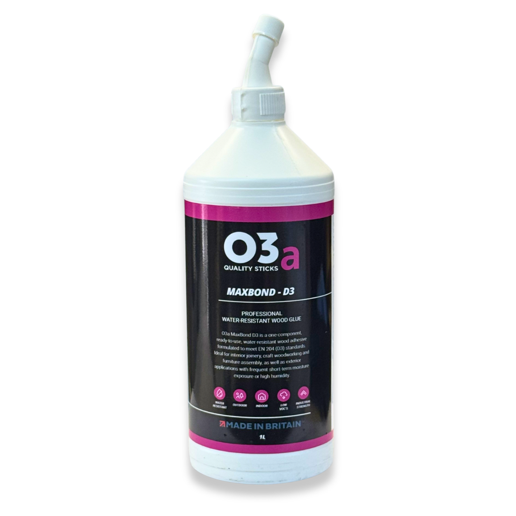 O3a Maxbond D3 is a professional-grade, water-resistant PVA wood glue designed for serious woodworking applications. Formulated to meet EN 204 – Class D3, it delivers strong, durable bonds for interior joinery and exterior projects exposed to occasional moisture or high humidity.