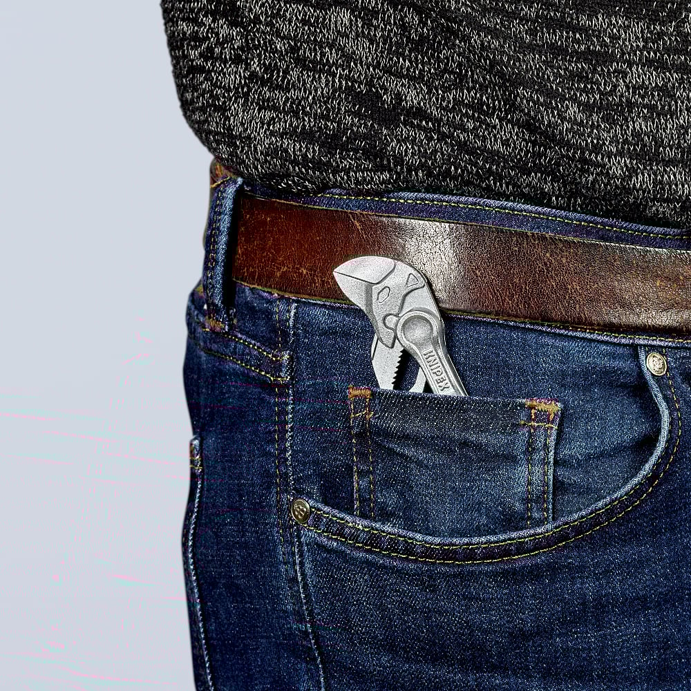 The KNIPEX Pliers Wrench XS 86 04 100 is a compact powerhouse combining the functions of a wrench and pliers in a single tool. At only 100 mm in length, this tool offers maximum accessibility in tight spaces, ideal for precision work, plumbing, model making, and on-the-go use. With smooth jaws and a high gripping capacity of up to 21 mm across flats, it delivers reliable, surface-friendly performance.