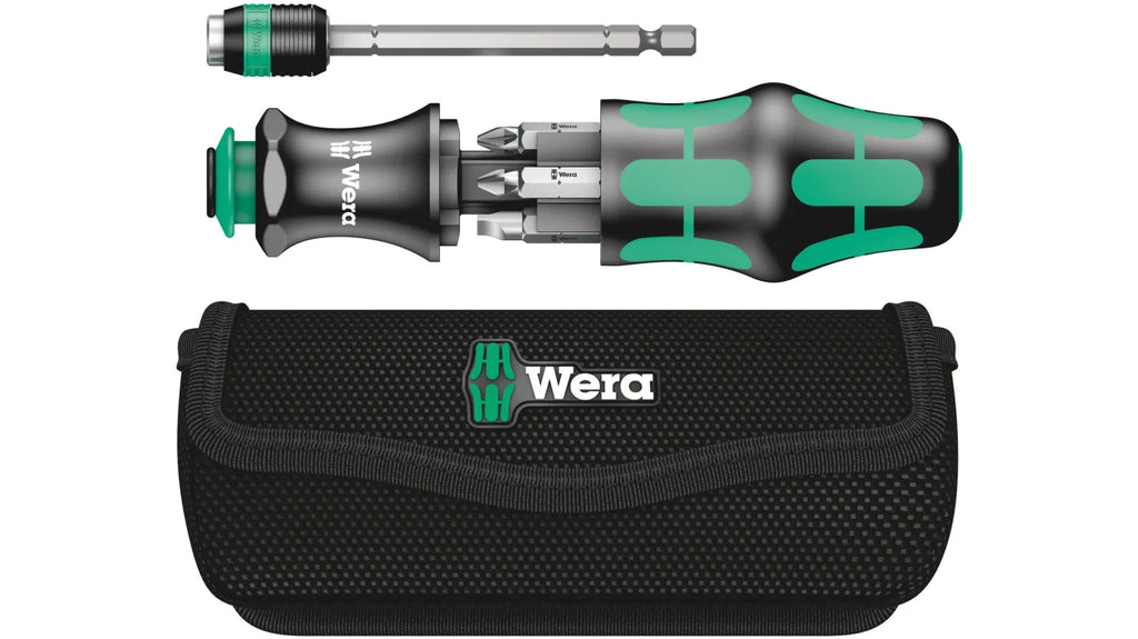 - 6x tough Wera bits (1PH 1 x 25 mm, 1PH 2 x 25 mm, 800/1 Z bits, 868/1 Z Square-Plus bits)