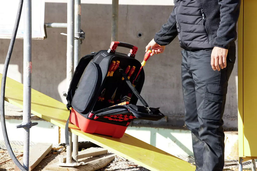 The Wiha Tool backpack electric 27-pcs. 45528 is a flexible high flying team player, ideal for mobile application and offering maximum freedom for the hands and work location. This sophisticated compartment system ensures clearly structured organization and easy removal of tools.